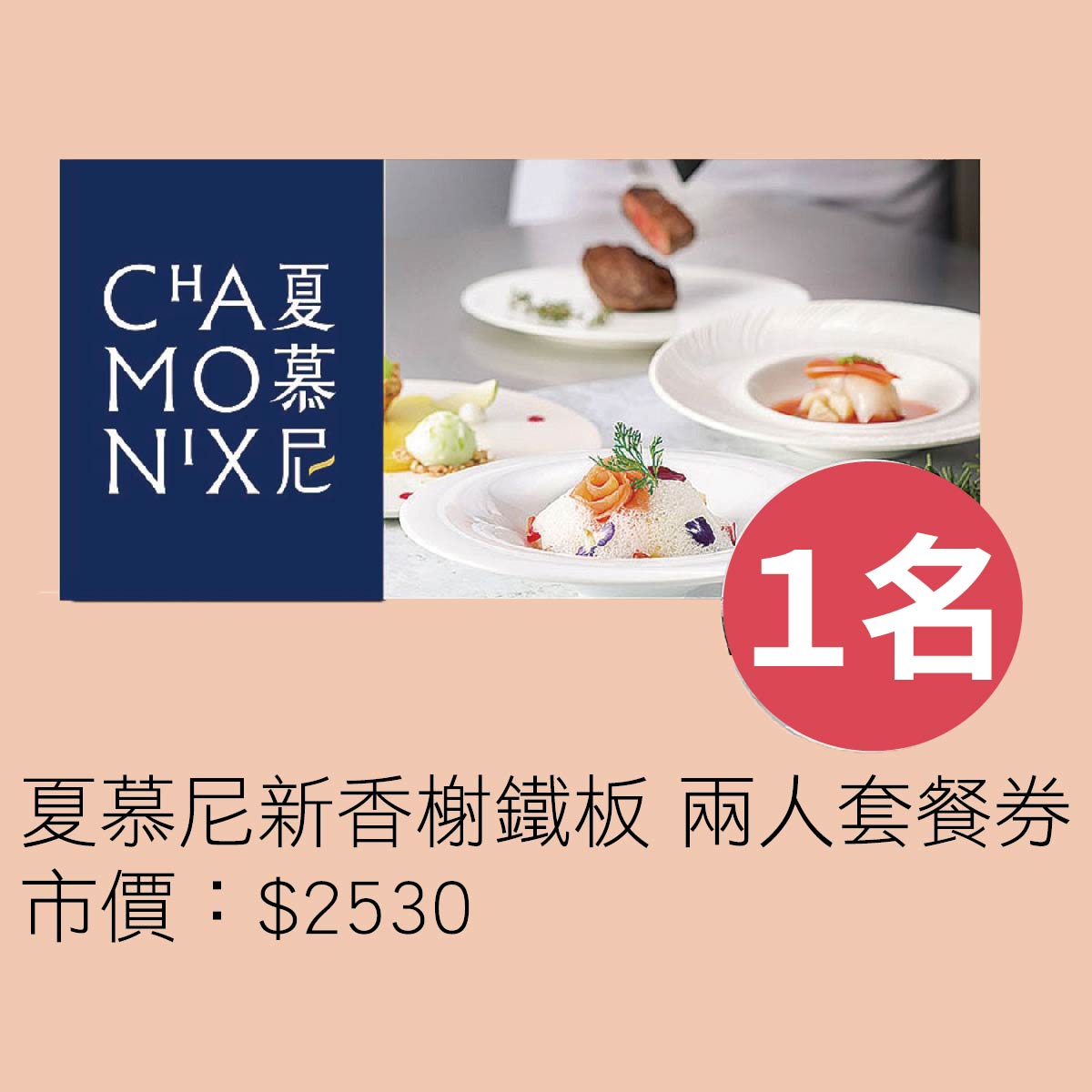 夏慕尼新香榭鐵板-兩人套餐券:(預計抽出1名,實際抽出1名)