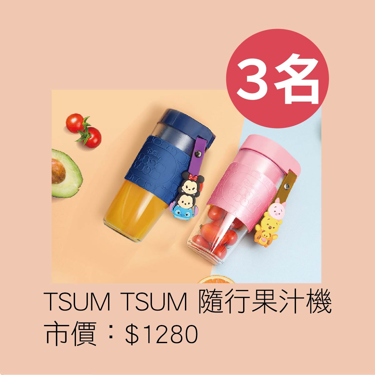 TSUMTSUM隨行果汁機(藍粉不挑色):(預計抽出3名,實際抽出3名)