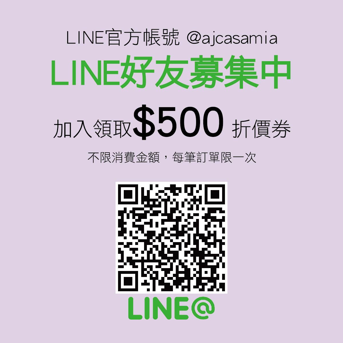 一、加入Line@輸入『愛加健康』領取電子$500購物金(不限金額抵用,每筆訂單限用一張)