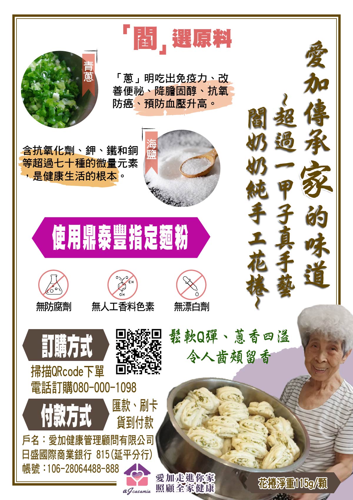 愛加健康的閻奶奶將她超過一甲子的純手工溫暖手藝分享給您及您親愛的家人。